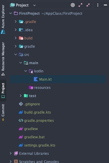 我們會看到有一個 Main.kt 的檔案在 src/main/kotlin 的資料夾下面。這個路徑很重要!基本上我們幾乎所有的檔案都會在這個路徑底下。那我們來看看Main.kt 裡面寫了什麼。
